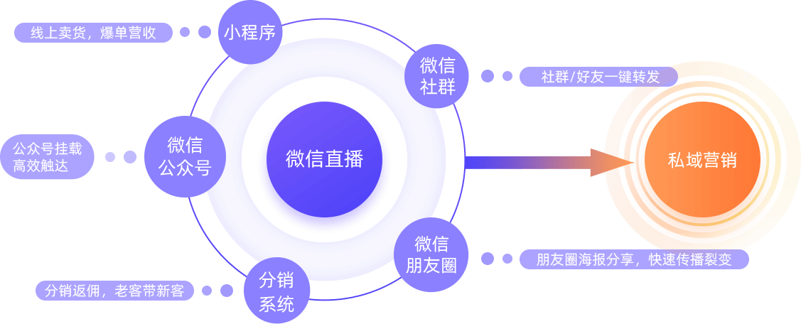 微信直播+小程序商城+公眾號+社群+朋友圈+分銷系統=私域營銷